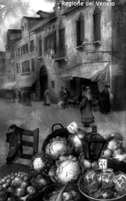 Venezia, riproduzione dipinto, pittore n.c., "Natura morta con veduta"