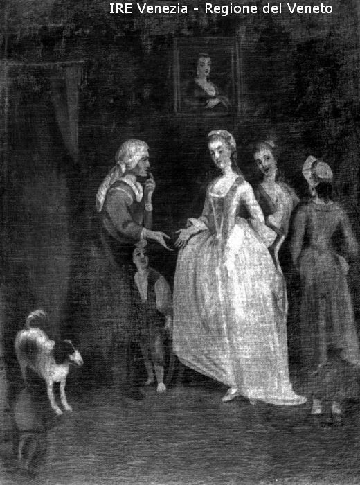 Venezia, riproduzione dipinto, bottega Pietro Longhi, scena di Filippi, Tomaso (XX)