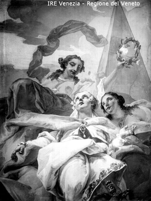 Venezia, palazzo Grassi, riproduzione dipinto, G.B. Canal, particolare allegoria sul soffitto dello scalone di Filippi, Tomaso (XX)