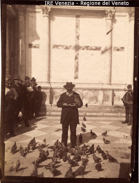 Venezia - Vita veneziana e lagunare - Scene e costumi - Turismo - Piazza S. Marco - Basilica di S. Marco - Turista con piccioni - Passanti