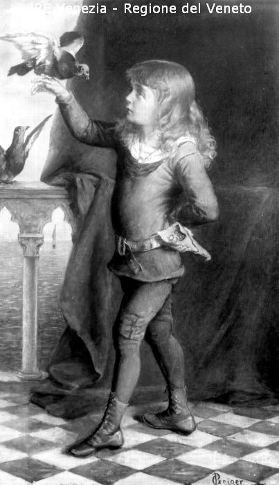 Venezia, riproduzione dipinto, P. Caeiger (?), scena romantica