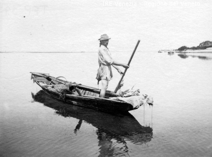 Venezia - Vita veneziana e lagunare - Scene e costumi - Laguna di Venezia - Imbarcazione: sc'iopon - Pescatore