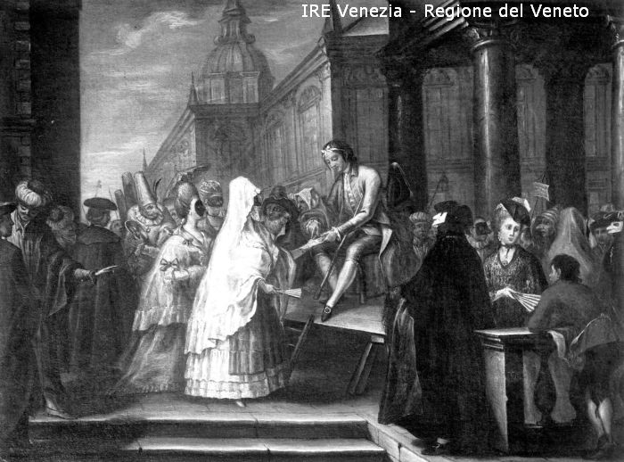 Venezia, proprietà Ravà, riproduzione dipinto, pittore n.c., scena carnevalesca