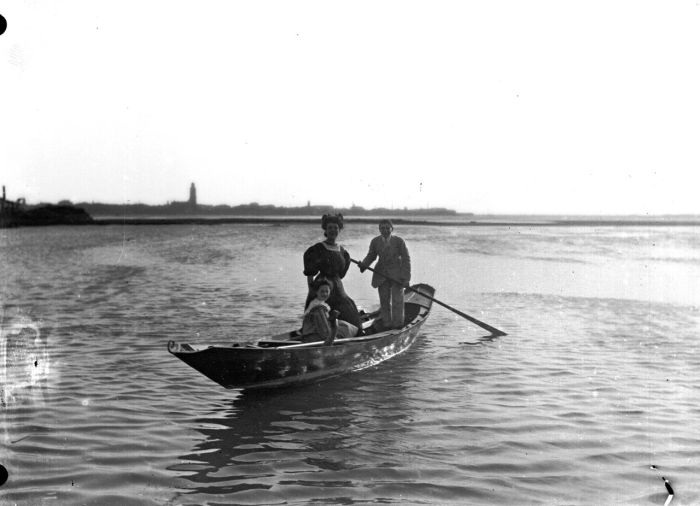 Laguna di Venezia, gruppo in sandolo di Filippi, Tomaso (fine XIX)