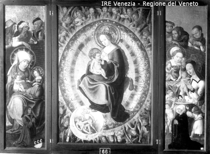 Museo Civico - Scuola dell'Alta Austria (Valzburg) - Trittico - Sala 2a n.66 - Nostra Donna col Putto dentro una corona di angeli sulla portella scene della vita della mAdonna e due donatori