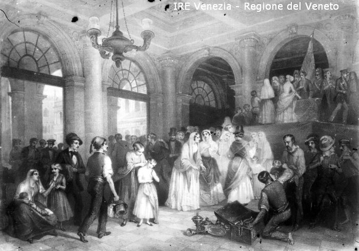 Venezia, Museo Civico, riproduzione dipinto, V. Giacomelli, "Offerte alla patria"