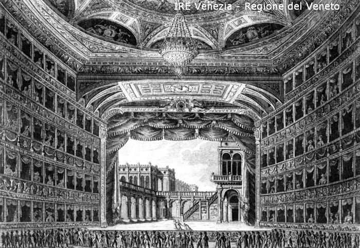 Venezia, Museo Civico, riproduzione di incisioni e stampe, G. Pividor, interno del Teatro La Fenice