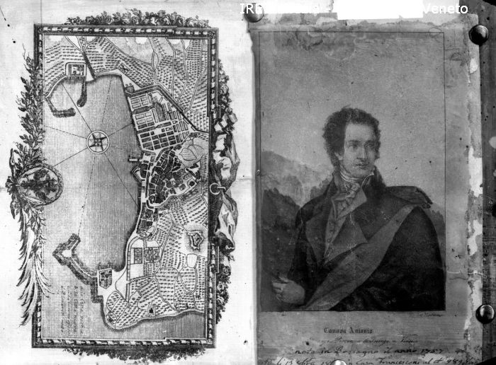 Venezia, Museo Civico, riproduzione di stampa, porto tunisino (?) e ritratto di Antonio Canova