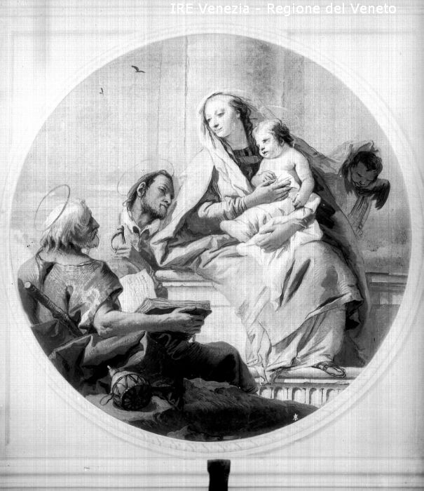 Venezia, Museo Civico, riproduzione dipinto, Giandomenico Tiepolo, monocromo, "Sacra Famiglia e San Girolamo Miani" di Filippi, Tomaso (XX)