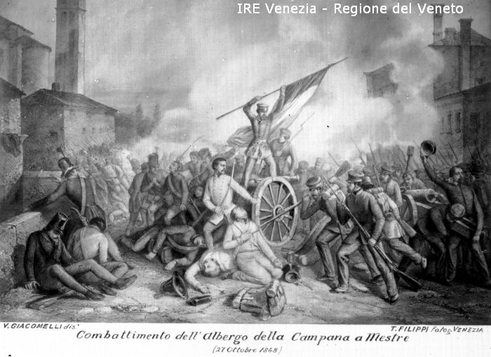 "Combattimento all'Albergo della Campana a Mestre, 27 ott. 1848" (sul coperchio della scatola)