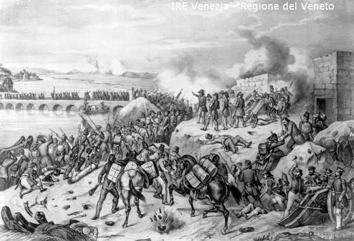 "Ritirata delle truppe Venete dal forte S. Marghera, 26 maggio 1849" (sul coperchio della scatola)