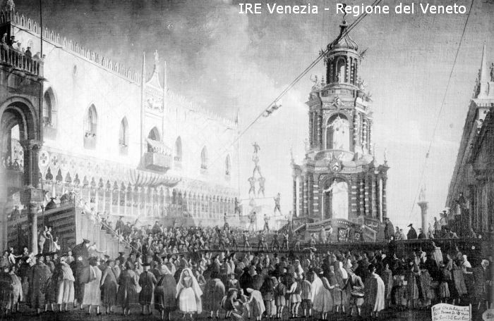 Venezia, Pinacoteca Querini Stampalia, riproduzione dipinto, Gabriel Bella, "La festa del Giovedi Grasso in Piazzetta"