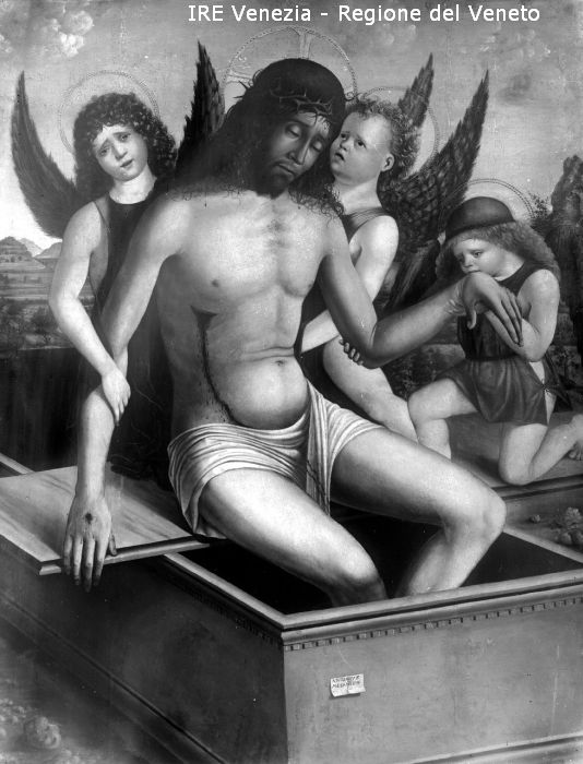 Venezia, Gallerie dell'Accademia, riproduzione dipinto, Antonello de Saliba, "Cristo morto e angeli"