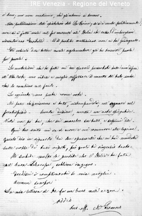 Venezia, Collezione Cortes, riproduzione lettera di Persano