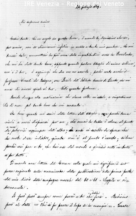 Venezia, Collezione Cortes, lriproduzione lettera di Persano 14/02/1877