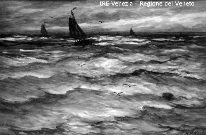 Venezia, Galleria d'Arte Moderna, riproduzione dipinto, pittore n.c., scena marina di Filippi, Tomaso (XX)
