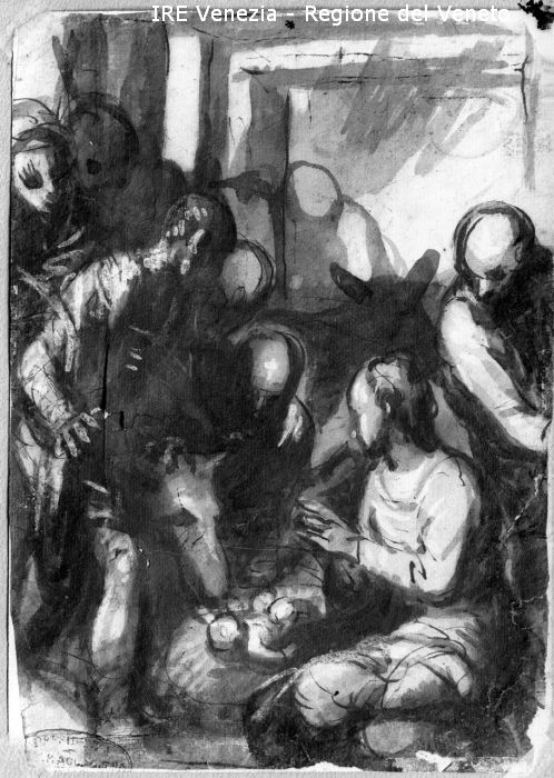 Venezia, Esposizione d'Arte Sacra, riproduzione dipinto, pittore n.c., scena di Filippi, Tomaso (XX)