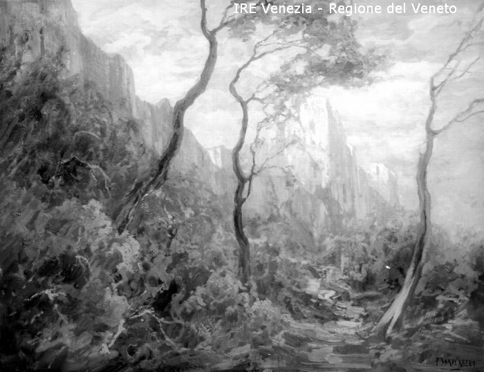 Venezia, Esposizione Internazionale d'Arte, riproduzione dipinto, Francesco Sartorelli, "Vecchio castello" di Filippi, Tomaso (XX)