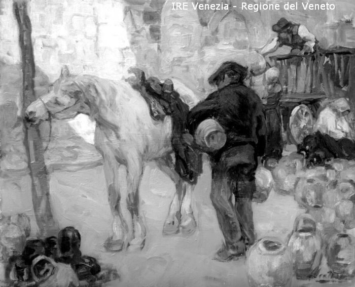 Venezia, Esposizione Internazionale d'Arte, riproduzione dipinto, Ferruccio Scattola, "Al mercato dei cocci"