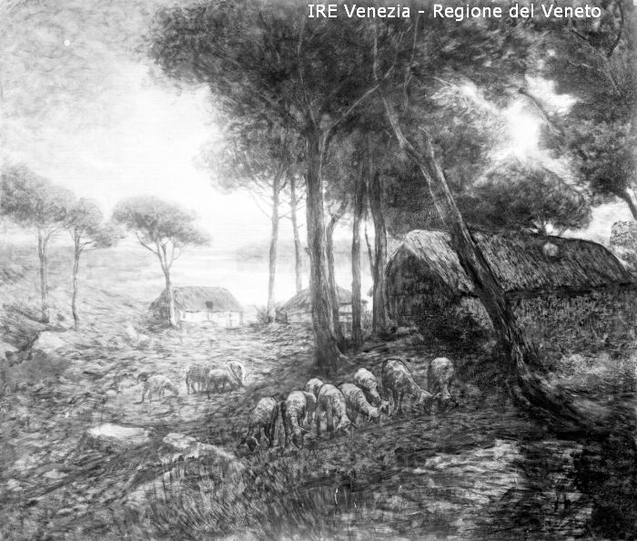 Venezia, riproduzione dipinto, Giuseppe Zanetti-Miti, paesaggio