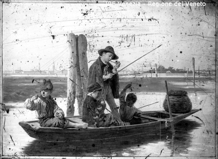 Venezia, riproduzione dipinto, Silvio Rotta (?), scena veneziana di Filippi, Tomaso (XIX)