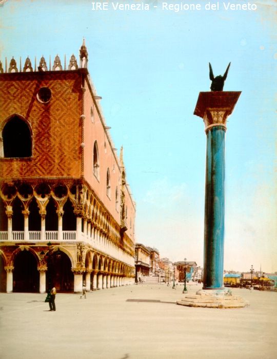Venezia - Vedute, monumenti, luoghi - Centro storico - Area Marciana - Molo: ripreso da ovest - Piazzetta - Palazzo Ducale - Colonna di S. Marco - Riva degli Schiavoni - Persone