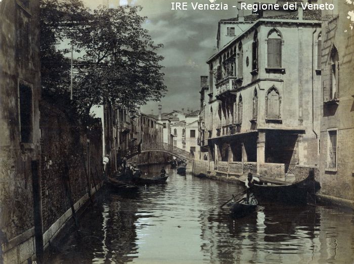 Venezia - Vedute, monumenti, luoghi - Centro storico - Canali e Rii - Cannaregio - Rio Priuli o della Guerra - Palazzo Priuli-Scarpon - Persone - Imbarcazioni - Uomo che rema
