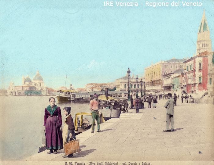 - ISCRIZIONI sul recto: nell'etichetta didascalica sotto l'immagine - N. 53. Venezia - Riva degli Schiavoni - pal. Ducale e Salute - fotografica -