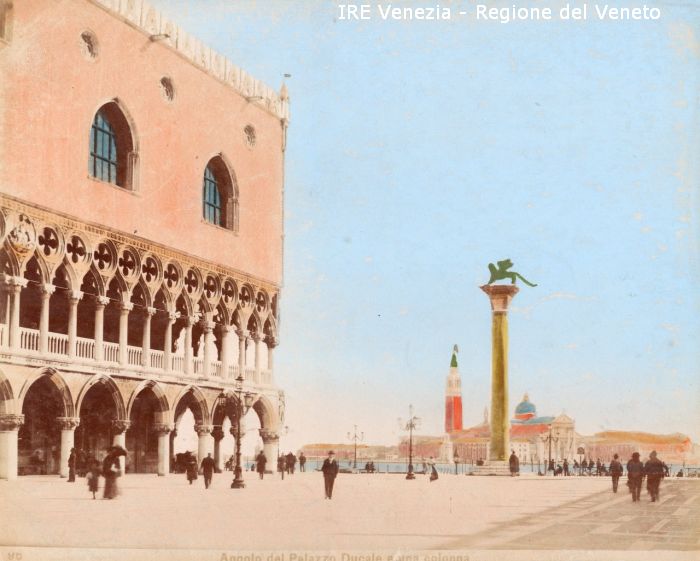 Venezia - Vedute, monumenti, luoghi - Centro storico - Area Marciana - Piazzetta: ripresa da nord - Palazzo Ducale - Colonna di S. Marco - Isola di S. Giorgio - Persone