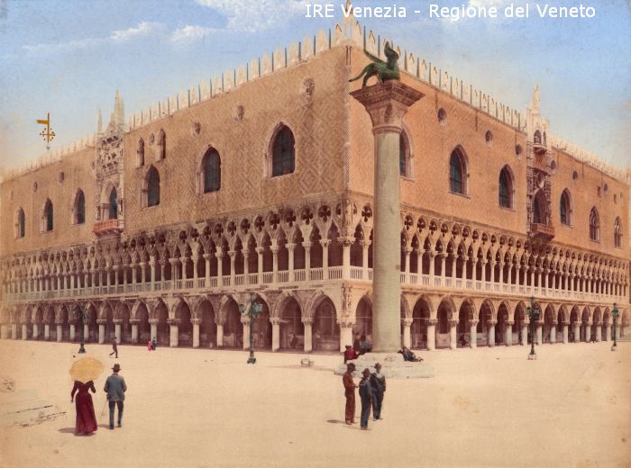 Venezia - Vedute, monumenti, luoghi - Centro storico - Area Marciana - Molo: ripreso da ovest - Piazzetta - Palazzo Ducale - Colonna di S. Marco - Persone