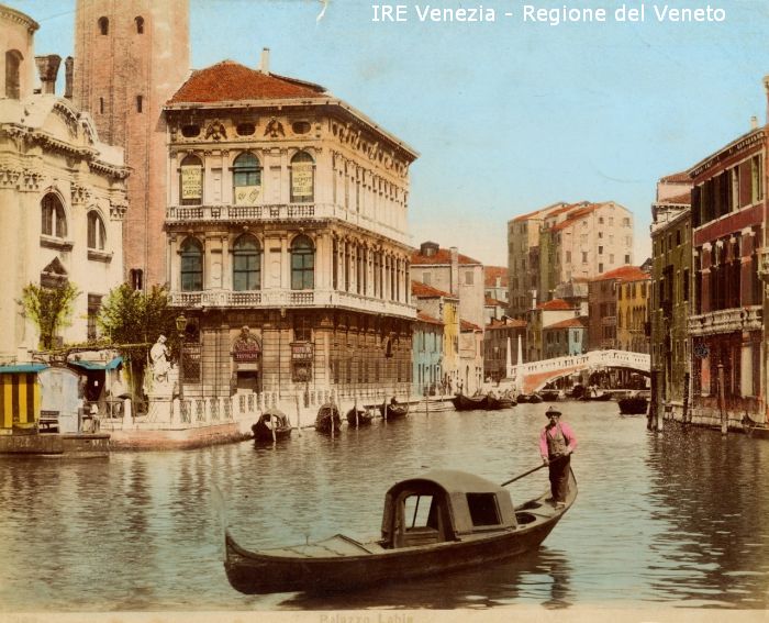 Venezia - Vedute, monumenti, luoghi - Centro storico - Canali e Rii - Canale di Cannaregio o di S. Giobbe - Chiesa di S. Geremia - Palazzo Labia - Ponte delle Guglie - Persone - Gondole - Gondoliere che rema