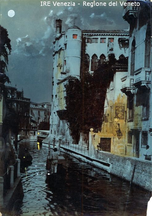Venezia - Vedute, monumenti, luoghi - Centro storico - Canali e Rii - Dorsoduro - Rio di S. Trovaso o delle Maravege: ripreso dal Ponte delle Maravege - Fondamenta Bollani - Gruppo di case con ringhiera in ferro