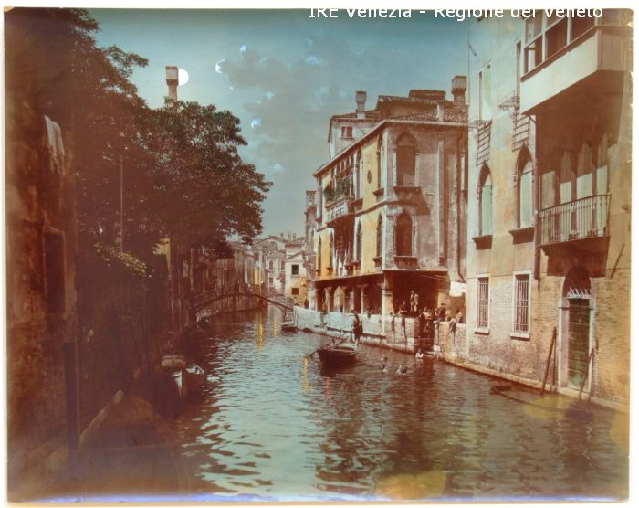 Venezia - Vedute, monumenti, luoghi - Centro storico - Canali e Rii - Cannaregio - Rio Priuli o della Guerra - Palazzo Priuli-Scarpon - Persone - Bambini che nuotano nel canale - Imbarcazioni - Uomo che rema