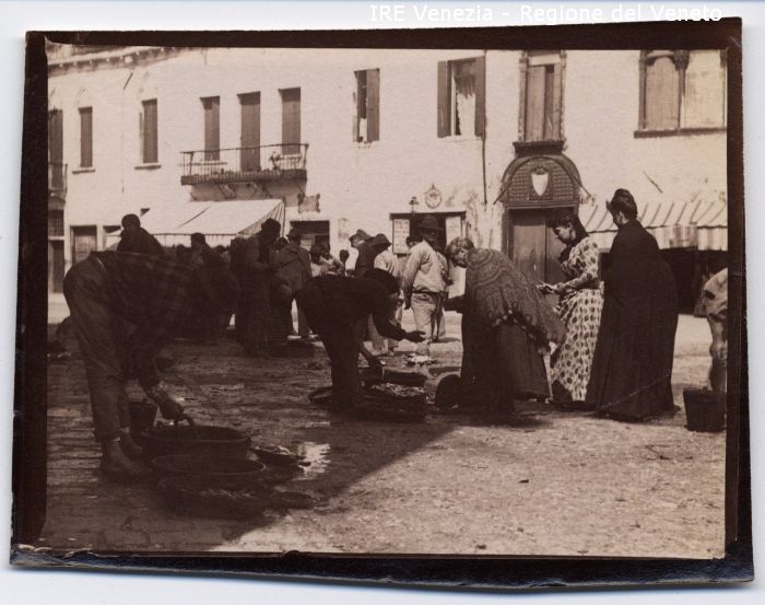 Venezia - Vita veneziana e lagunare - Scene e costumi - Mercato, negozi, bancarelle - Campo S. Margherita - Ambulanti - Popolane - Scene di mercato