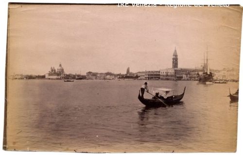 Venezia - Vedute, monumenti, luoghi - Centro storico - Bacino di S. Marco: ripreso dalla Riva dei Sette Martiri - Gondola - Gondoliere
