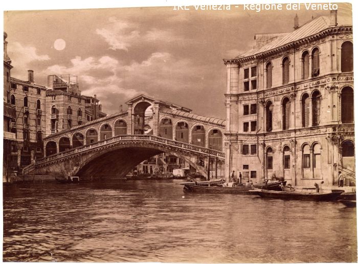 Venezia - Vedute, monumenti, luoghi - Centro storico - Canal Grande (dalla Stazione verso Rialto) - Ponte di Rialto - Palazzo dei Camerlenghi - Persone - Imbarcazioni