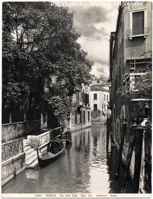 - ISCRIZIONI sul recto: nell'etichetta didascalica sotto l'immagine - 14647 - VENEZIA - Rio delle Erbe - Ripr. Int. - Anderson Roma - a matita -