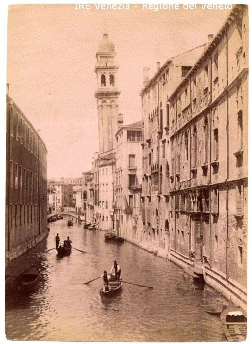 Venezia - Vedute, monumenti, luoghi - Centro storico - Canali e Rii - Castello - Rio dei Greci: ripreso dal Ponte della Pietà - Campanile della Chiesa dei Greci - Imbarcazioni - Gondole - Uomini che remano