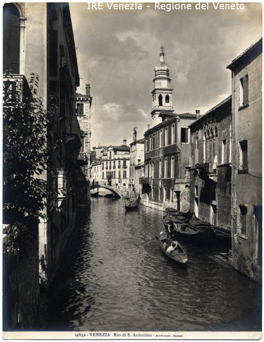 - ISCRIZIONI sul recto: nell'etichetta didascalica sotto l'immagine: al centro - 14632 - VENEZIA - Rio di S. Antonino - Anderson, Roma - fotografica -