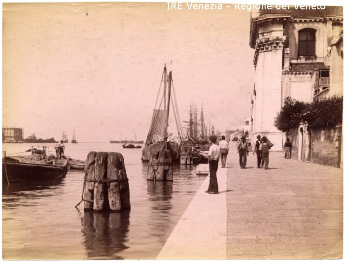 Venezia - Vedute, monumenti, luoghi - Centro storico - Canali e Rii - Dorsoduro - Canale della Giudecca - Fondamenta delle Zattere ai Gesuati - Chiesa dei Gesuati (S. Maria del Rosario) - Persone - Imbarcazioni