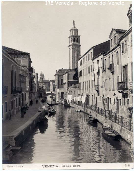 - ISCRIZIONI sul recto: nell'etichetta didascalica sotto l'immagine - Edizione inalterabile./ VENEZIA - Rio dello Squero./ 3261 - fotografica -