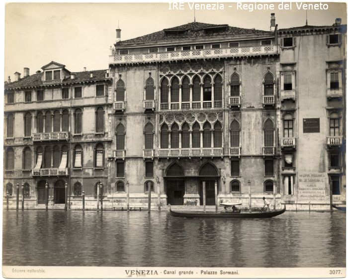 - ISCRIZIONI sul recto: nell'etichetta didascalica sotto l'immagine - Edizione inalterabile./ VENEZIA - Canal grande - Palazzo Sormani./ 3077. - fotografica -