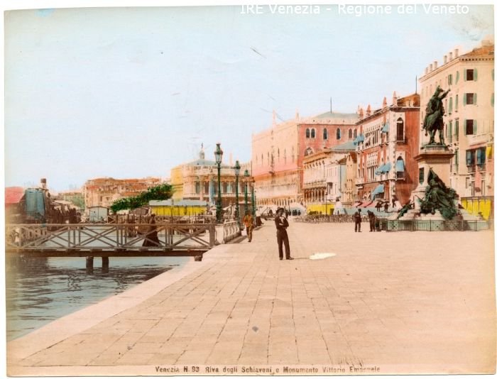 Venezia - Vedute, monumenti, luoghi - Centro storico - Area Marciana - Riva degli Schiavoni: ripresa da est - Monumento equestre di Vittorio Emanuele II - Persone