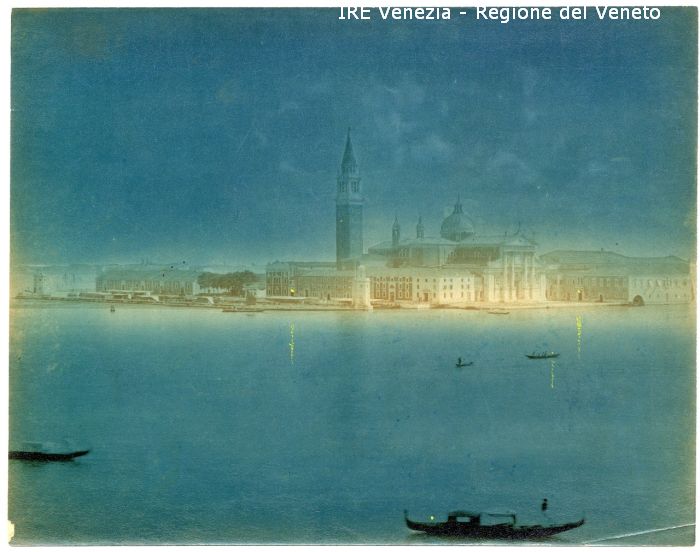Venezia - Vedute, monumenti, luoghi - Centro storico - Bacino di S. Marco - Isola di S. Giorgio Maggiore - Chiesa di S. Giorgio Maggiore - Gondole - Gondolieri