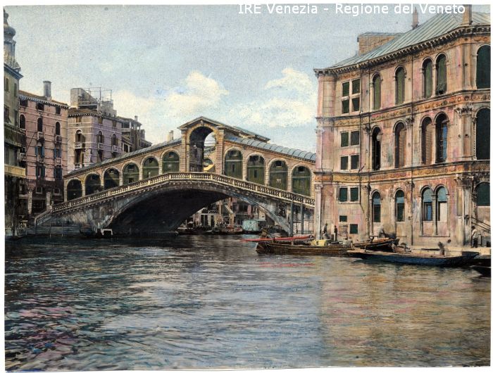 Venezia - Vedute, monumenti, luoghi - Centro storico - Canal Grande (dalla Stazione verso Rialto) - Ponte di Rialto - Palazzo dei Camerlenghi - Persone - Imbarcazioni