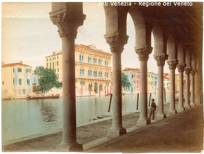 Venezia - Vedute, monumenti, luoghi - Centro storico - Canal Grande (dalla Stazione verso Rialto) - Palazzo Vendramin-Calergi: ripreso dal Fondaco dei Turchi - Bambino - Imbarcazioni ormeggiate