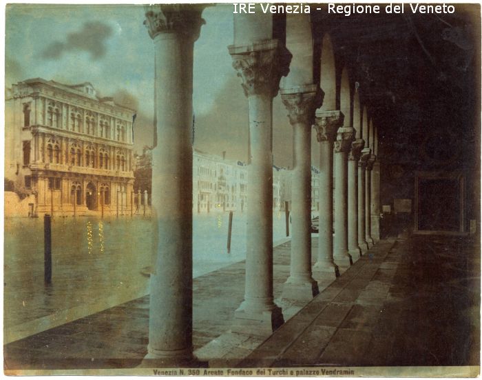 - ISCRIZIONI sul recto: nell'etichetta didascalica sotto l'immagine: al centro - Venezia N. 350 Arcate Fondaco dei Turchi e palazzo Vendramin - fotografica -