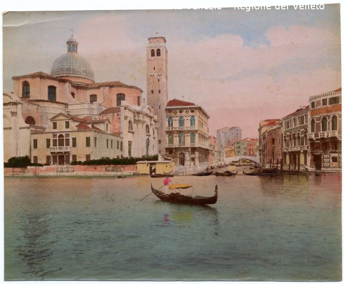 Venezia - Vedute, monumenti, luoghi - Centro storico - Canali e Rii - Canale di Cannaregio o di S. Giobbe - Chiesa di S. Geremia - Palazzo Labia - Ponte delle Guglie - Persone - Gondole - Gondolieri che remano