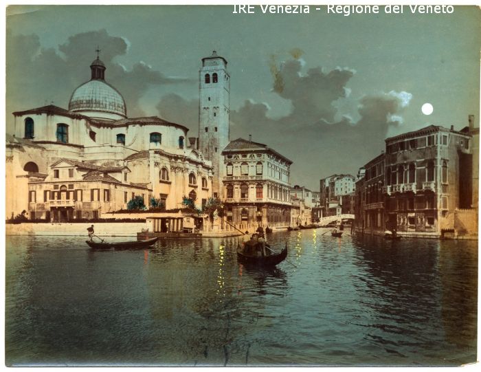 Venezia - Vedute, monumenti, luoghi - Centro storico - Canali e Rii - Canale di Cannaregio o di S. Giobbe - Chiesa di S. Geremia - Palazzo Labia - Ponte delle Guglie - Persone - Gondole - Gondolieri che remano