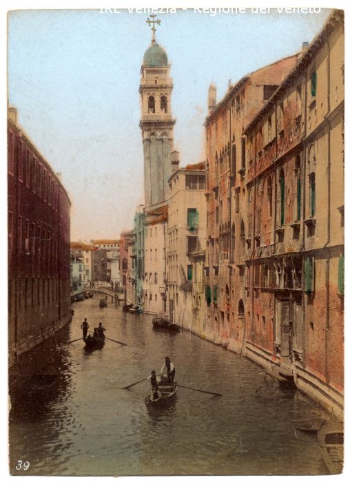 Venezia - Vedute, monumenti, luoghi - Centro storico - Canali e Rii - Castello - Rio dei Greci: ripreso dal Ponte della Pietà - Campanile della Chiesa dei Greci - Imbarcazioni - Gondole - Uomini che remano